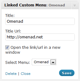 I'm working on several Wordpress based projects, including Omescribe, which is one of a family of sites including Omenad and Madhukali. Because these sites are related, I wanted them to fetch the latest posts from each other. Madhukali is running on Wordpress, so I used the RSS Feed Widget to fetch its posts. Omenad, however, is still an old site with individual HTML pages. I wanted to create a menu that led to Omenad and its salient sections, namely Articles, Queries, Raga Rang and In My View. This was also easily accomplished with the Custom Menu Widget. But I wanted to have the title link to Omenad.